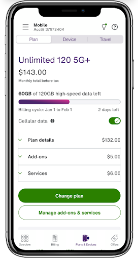 A usage bar was added to the plans and devices screen, along with a cellular data toggle